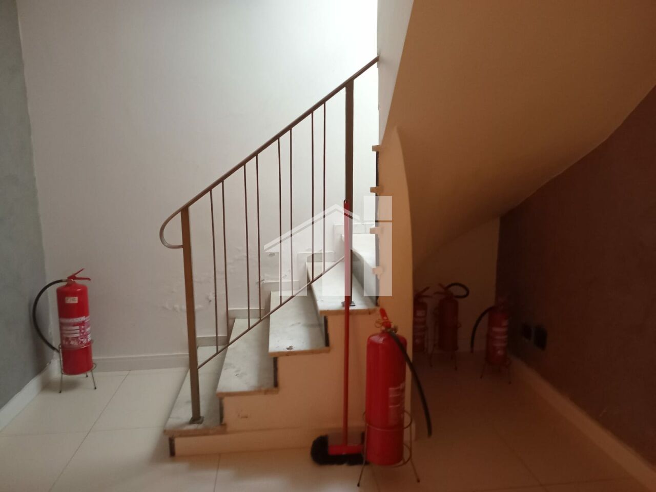 despensa - escada com corrimão - piso granito - porta de entrada de vidro mais